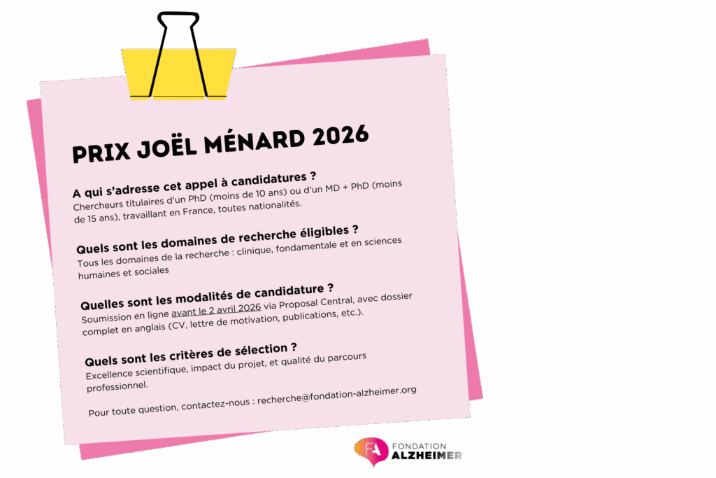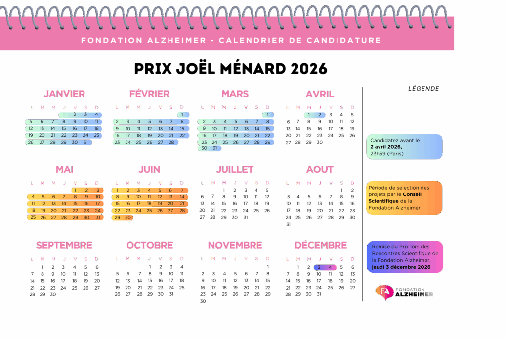 - Remise du Prix : le 3 décembre 2026 lors des Rencontres Scientifiques de la Fondation Alzheimer