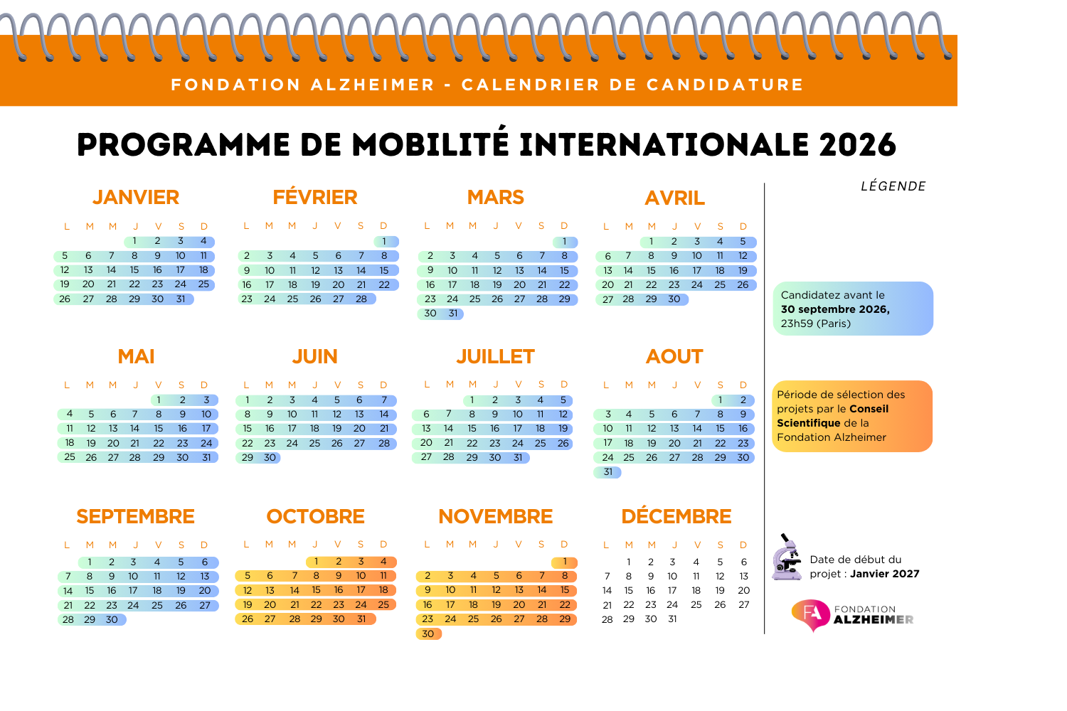 L’accroissement significatif de la masse critique des chercheurs hautement qualifiés internationalement dans le champ des maladies neurocognitives dont la maladie d’Alzheimer, est un enjeu important pour pouvoir lutter efficacement contre ces maladies. C’est dans cet objectif que la Fondation Alzheimer lance son appel à projet « Programme de mobilité internationale » pour permettre à des chercheurs de formation scientifique ou médicale d’étendre leurs compétences en recherche, dans un laboratoire public étranger, avec comme objectif de développer de nouvelles approches et d’initier des travaux collaboratifs de retour de France.